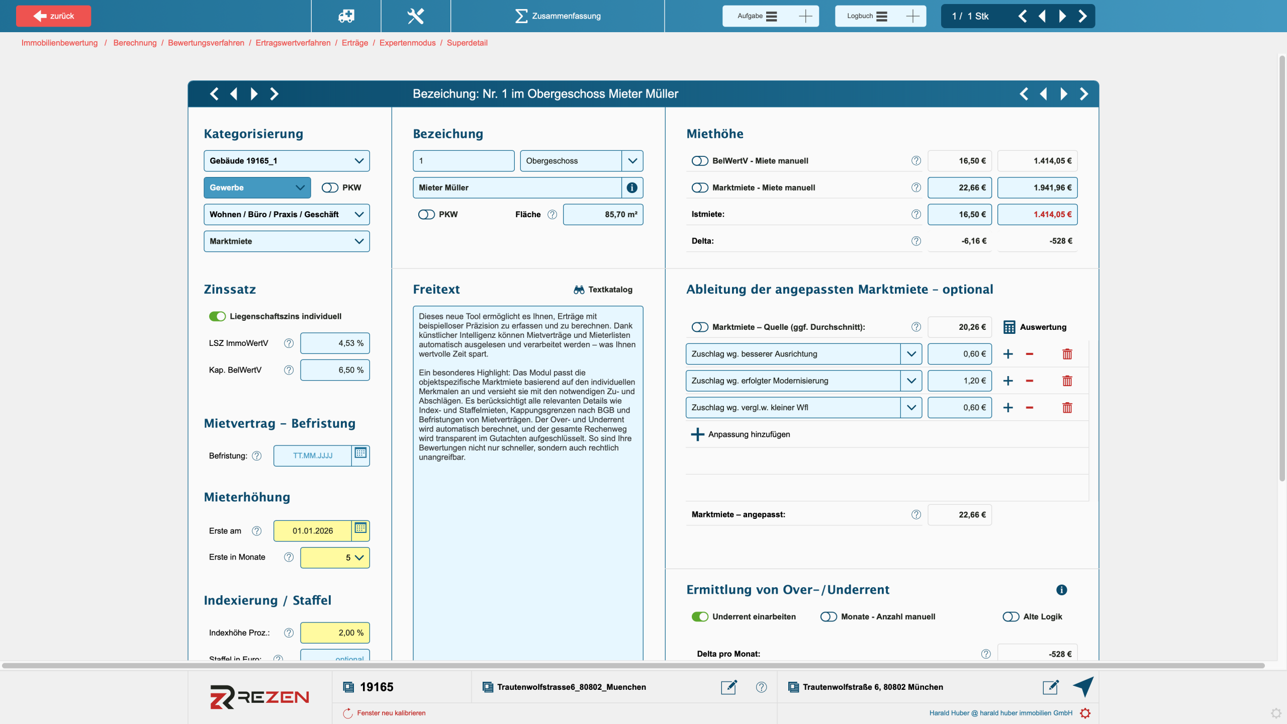 Wurde die Istmiete korrekt übernommen? Wurde die Marktmiete korrekt ermittelt? Wurden ggf. vorhandene Klauseln aus dem Vertrag korrekt verarbeitet? Wurde die Kappungsgrenze an der Adresse korrekt ermittelt?